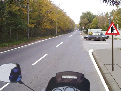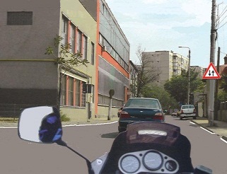 Care dintre cele doua indicatoare avertizeaza conducatorii de motociclete ca au prioritate?