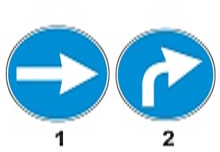 Care dintre cele doua indicatoare obliga la schimbarea directiei de mers spre dreapta, dupa depasirea locului unde este instalat?